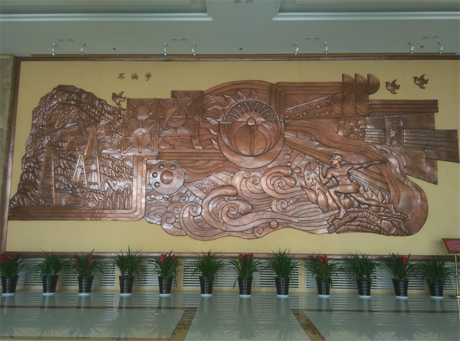大型鍛銅浮雕——石油夢,于2015年8月正式落成中國石油大學華東校區(qū)(青島市黃島)。該浮雕,由紫銅板手工鍛造成型。寓意了石油人奮發(fā)進取的創(chuàng)業(yè)精神及祖國石油業(yè)的蓬勃發(fā)展。