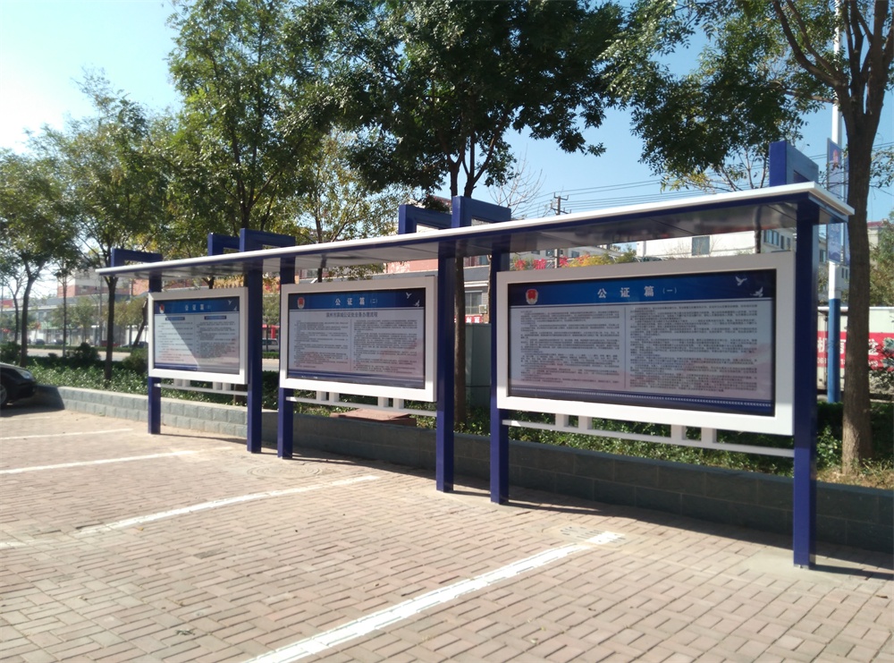 濱州市濱城區(qū)司法局宣傳欄,2015年10月22日安裝于濱州市黃河15路渤海8路路口東南角—濱城區(qū)法治中心。