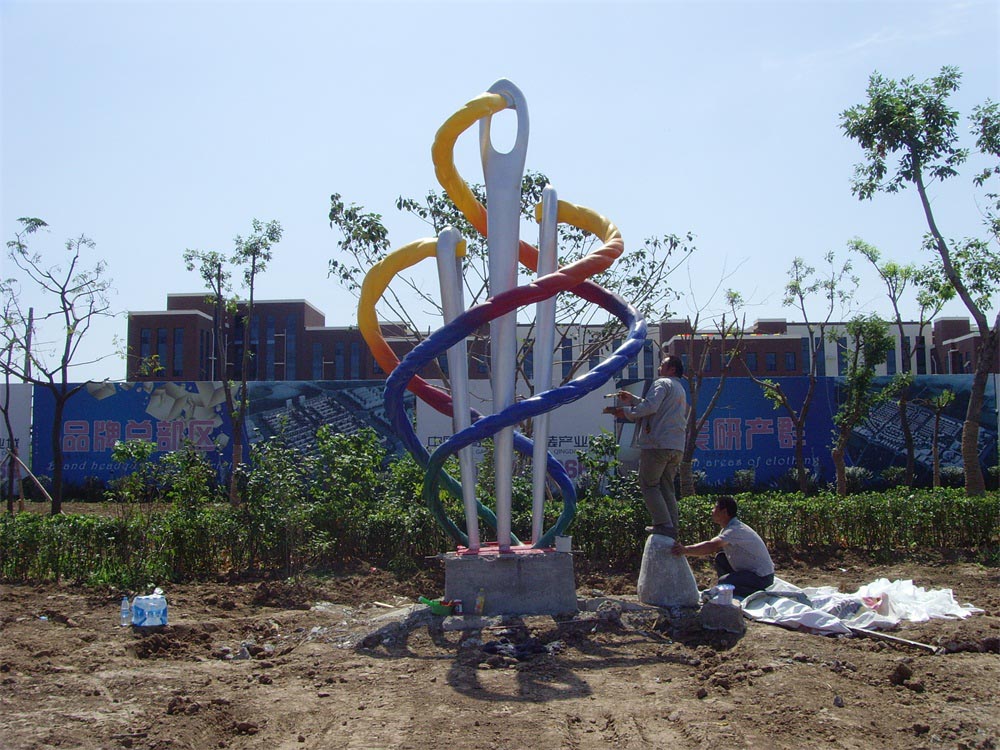 本項目包括:不銹鋼雕塑——“舞”,不銹鋼雕塑——“針線之美”,不銹鋼雕塑——“凌空之剪”,玻璃鋼雕塑——“美人之座”,玻璃鋼雕塑——“紐扣座椅”。制作歷時2個月。