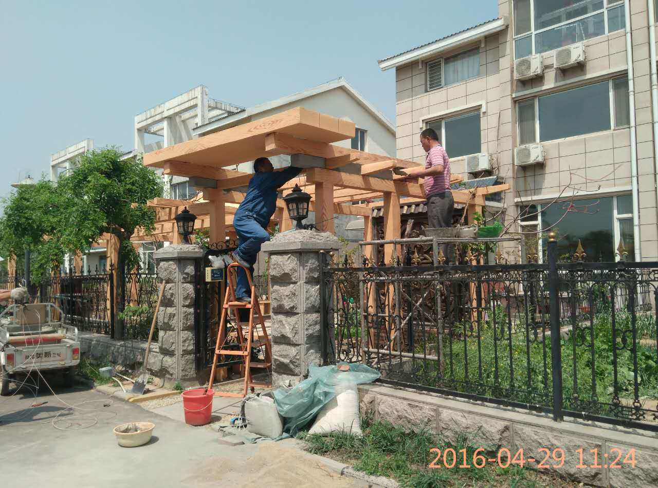 施工內(nèi)容:水泥仿木長廊、藤架、水泥仿木涼亭,水泥浮雕。