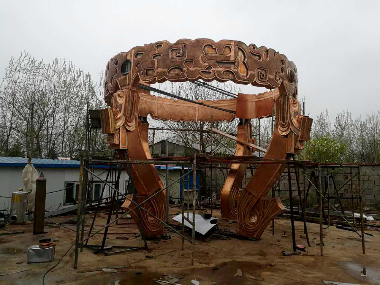 簡(jiǎn)要技術(shù)要求:鍛銅渾天儀景觀小品設(shè)計(jì)、制作與安裝,采用厚度1.5-2.0mm紫銅鍛造。