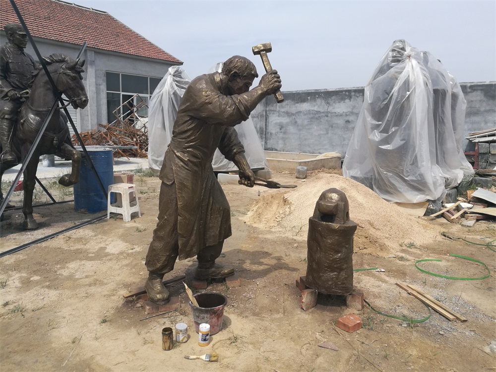 雕塑說明:騎馬將軍雕塑高2.6米,成品為玻璃鋼工藝制作。該組雕塑是雕塑公司拋開市場環(huán)境,真正藝術(shù)化創(chuàng)作的珍貴作品。打鐵匠雕塑,高1.9米,同樣采用玻璃鋼工藝制作。兩組雕塑的泥塑均有雕塑師張凱完成。未經(jīng)允許,嚴(yán)禁把本相冊圖片用于商業(yè)用途。