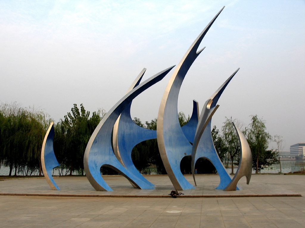 2013年,安裝與青島市嶗山區(qū)園博會展區(qū)內(nèi)。材質(zhì):不銹鋼,內(nèi)置防腐金屬骨架。表面著氟碳漆。